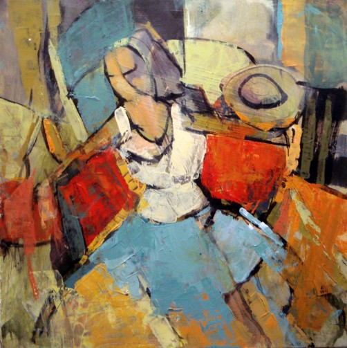 Red Poet acrylic on paper 11x11